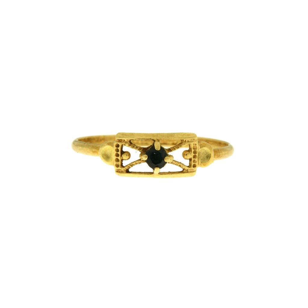 Anello in oro 750 (18 KT) rettangolo lavorato con pietrina blu Dimensione/misura 11 Chiusura gioiello...