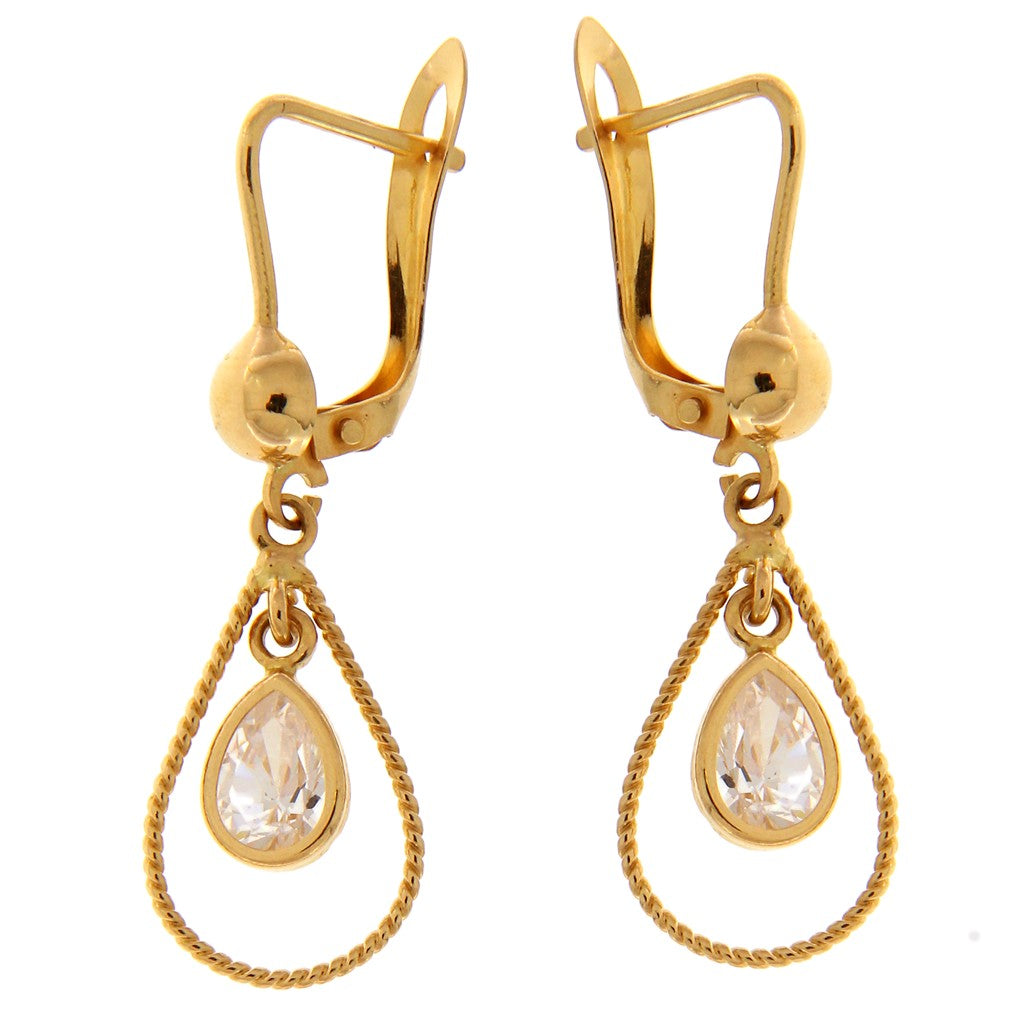 Orecchini in oro 750 (18KT) monachelle con pietra bianca e lavorazione a righe Dimensione/misura -...