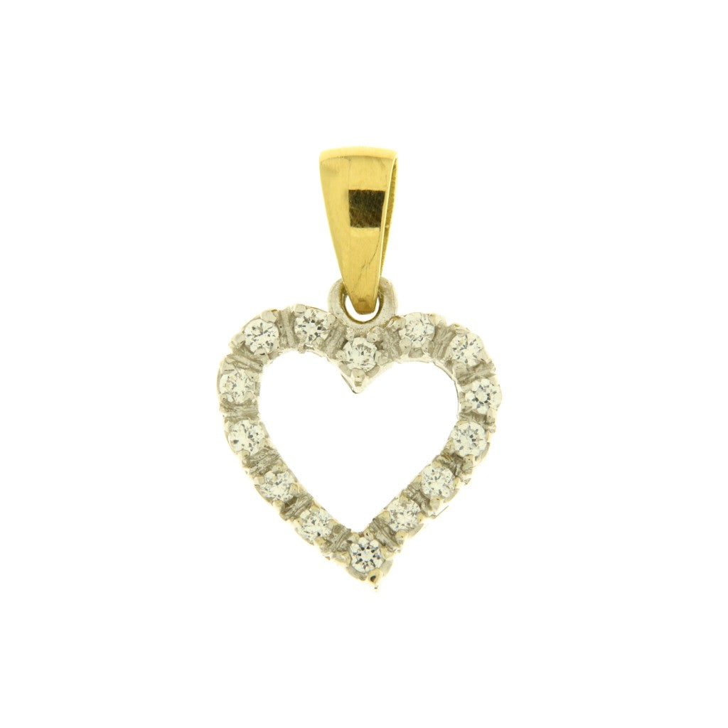Ciondolo in oro 750 (18KT) cuore vuoto con pietre zircone Dimensione/misura cm 1,7 x 2,7...