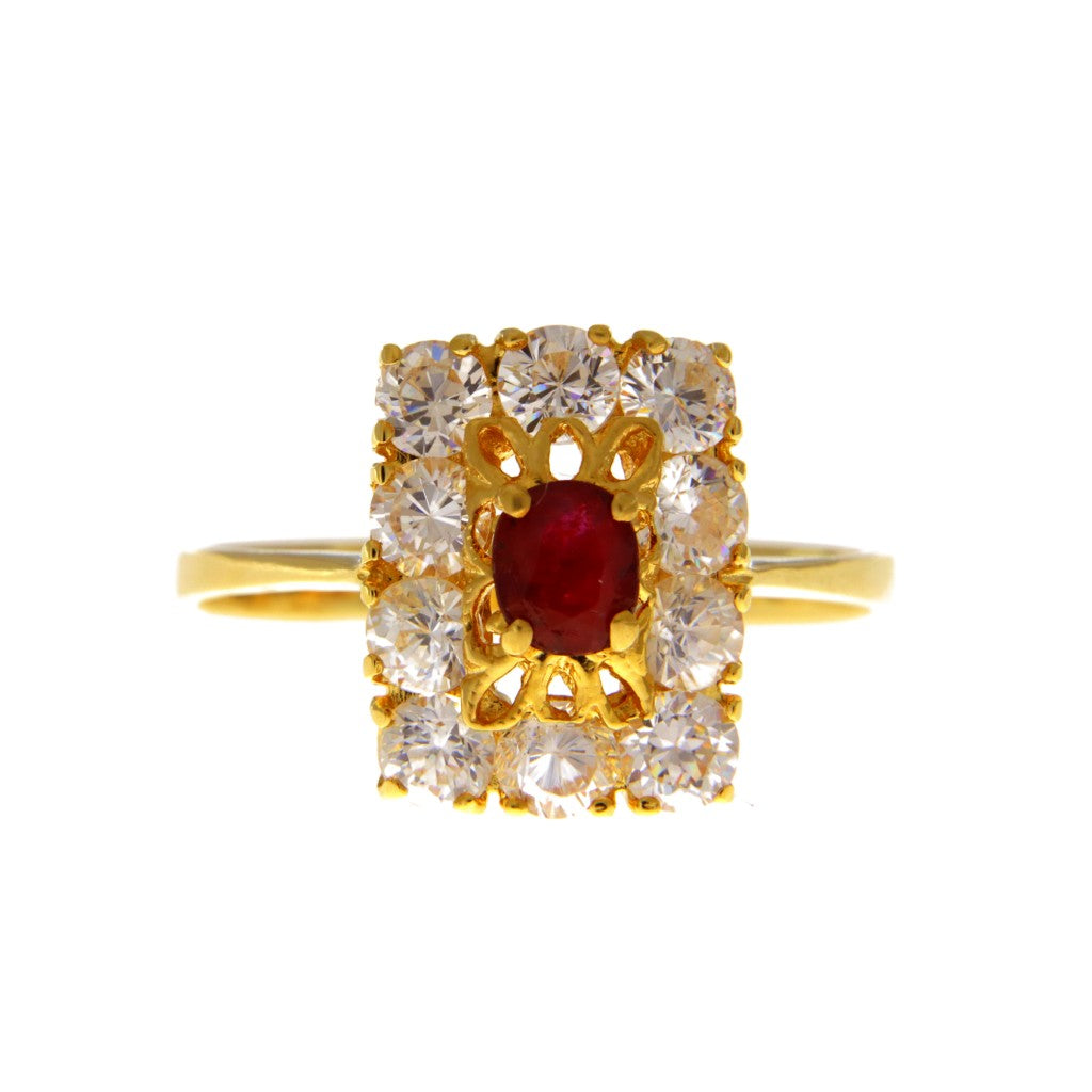 Anello in oro 750 (18 KT) rettangolo con pietre bianche e rossa Dimensione/misura 16 Chiusura...