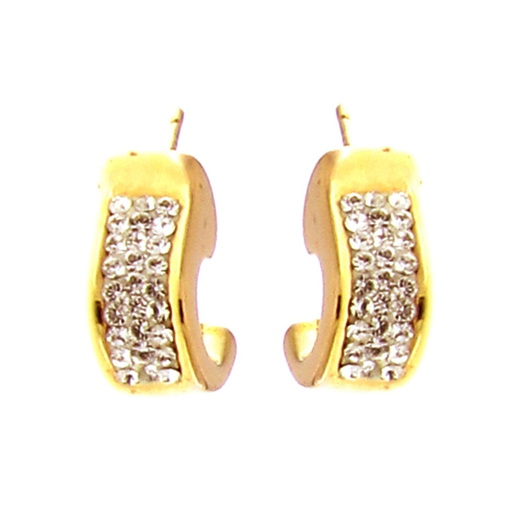 Orecchini in oro 750 (18KT) semicerchi copri lobo con pietre zircone, lavorazione a cresta Dimensione/misura...