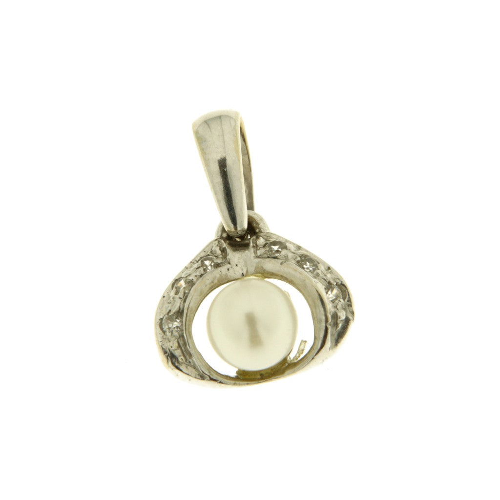Ciondolo in oro 750 (18KT) perla e pietra bianca Dimensione/misura cm 1,5 x 0,5 cm...
