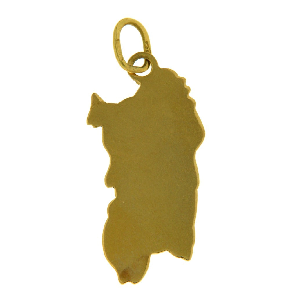 Ciondolo in oro 750 (18KT) raffigurante la Sardegna, lavorato sulla superficie Dimensione/misura 2,5 x 1,2...