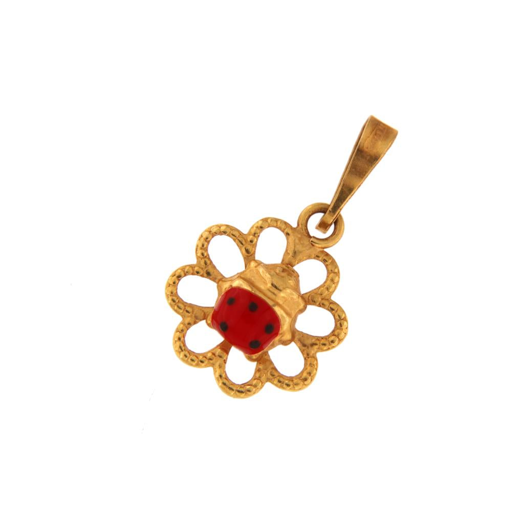 Ciondolo in oro 750 (18KT) Fiore margherita con coccinella smaltata Dimensione/misura 1,50 x 1,00 cm...