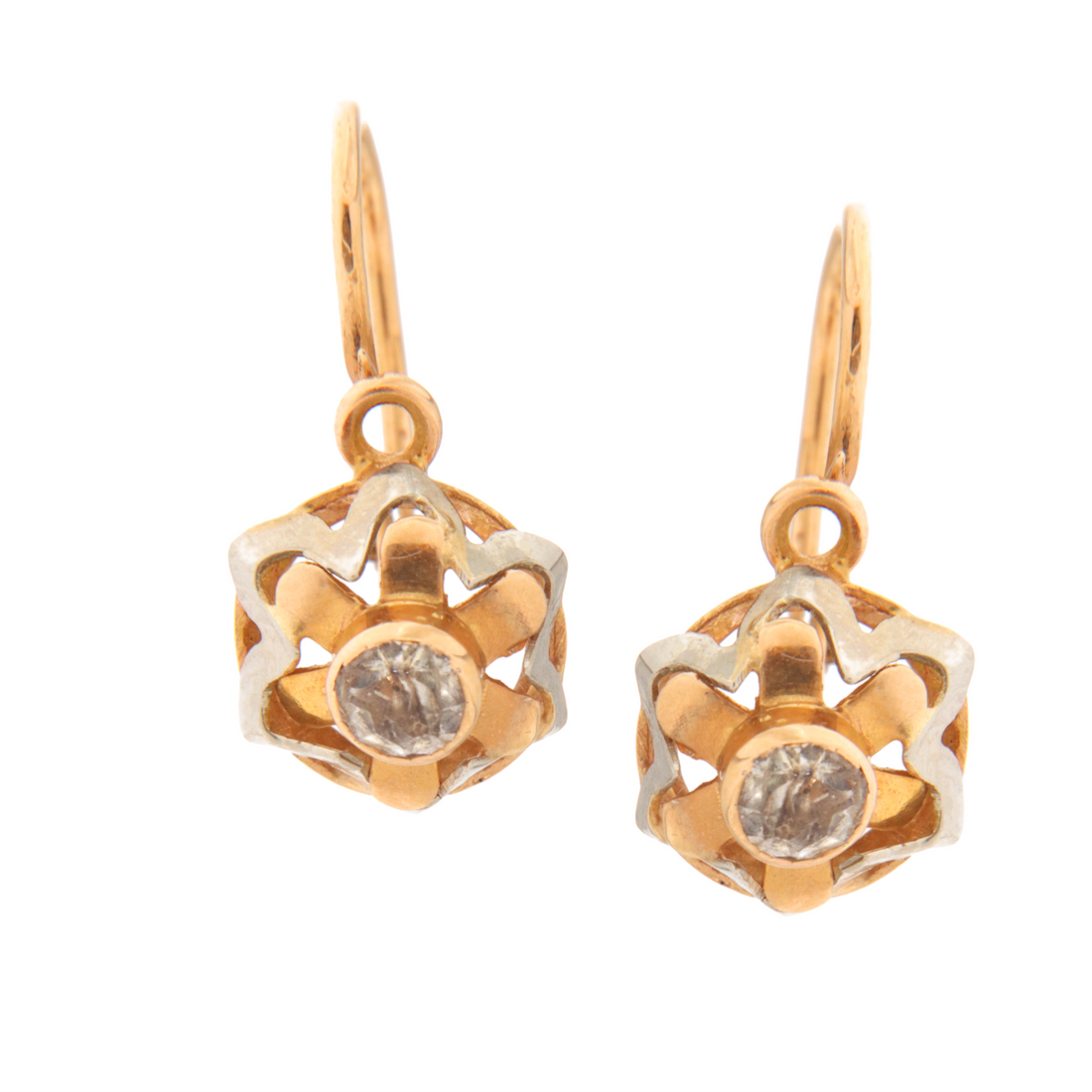 Orecchini in oro 750 (18KT) a forma di fiore con pietra bianca e chiusura a...