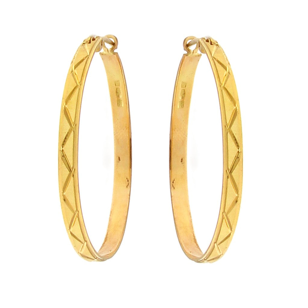 Orecchini in oro 750 (18KT) cerchi con lavorazione a zig-zag Dimensione/misura cm 3,5 di diametro...