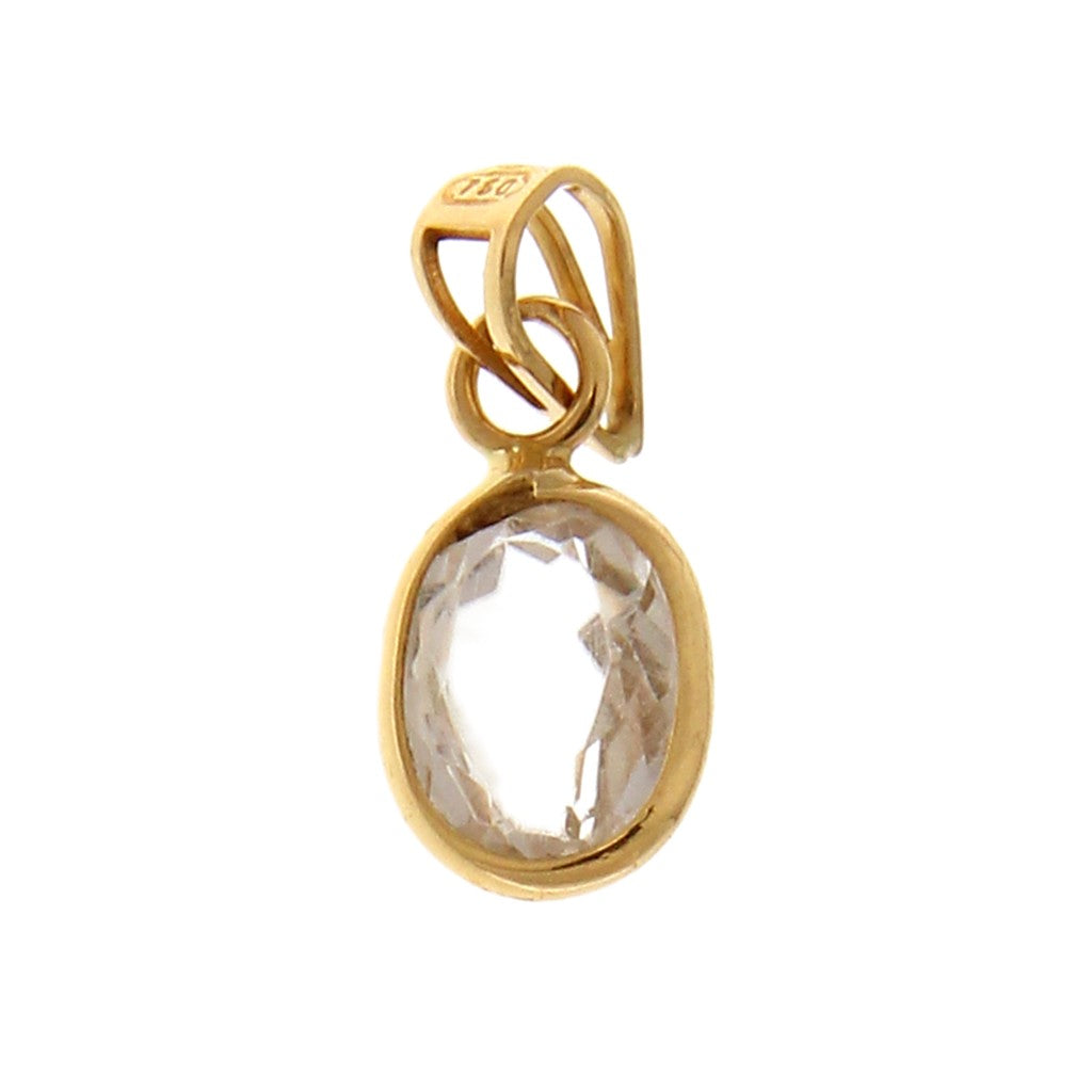 Ciondolo in oro 750 (18KT) ovale con pietra celestina, tendente al trasparente Dimensione/misura cm 1,8...