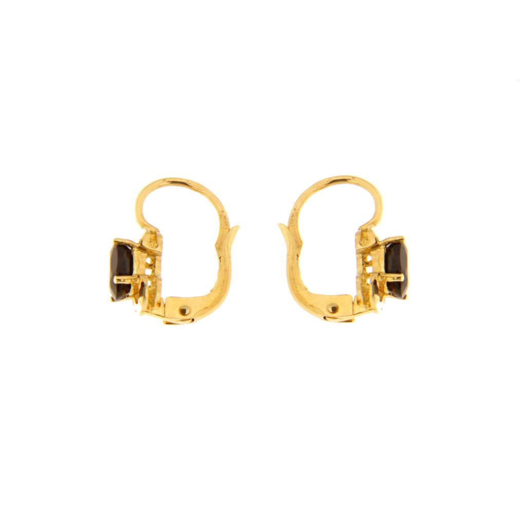 Orecchini in oro 750 (18KT) monachelle di piccole dimensioni con pietra blu artificiale