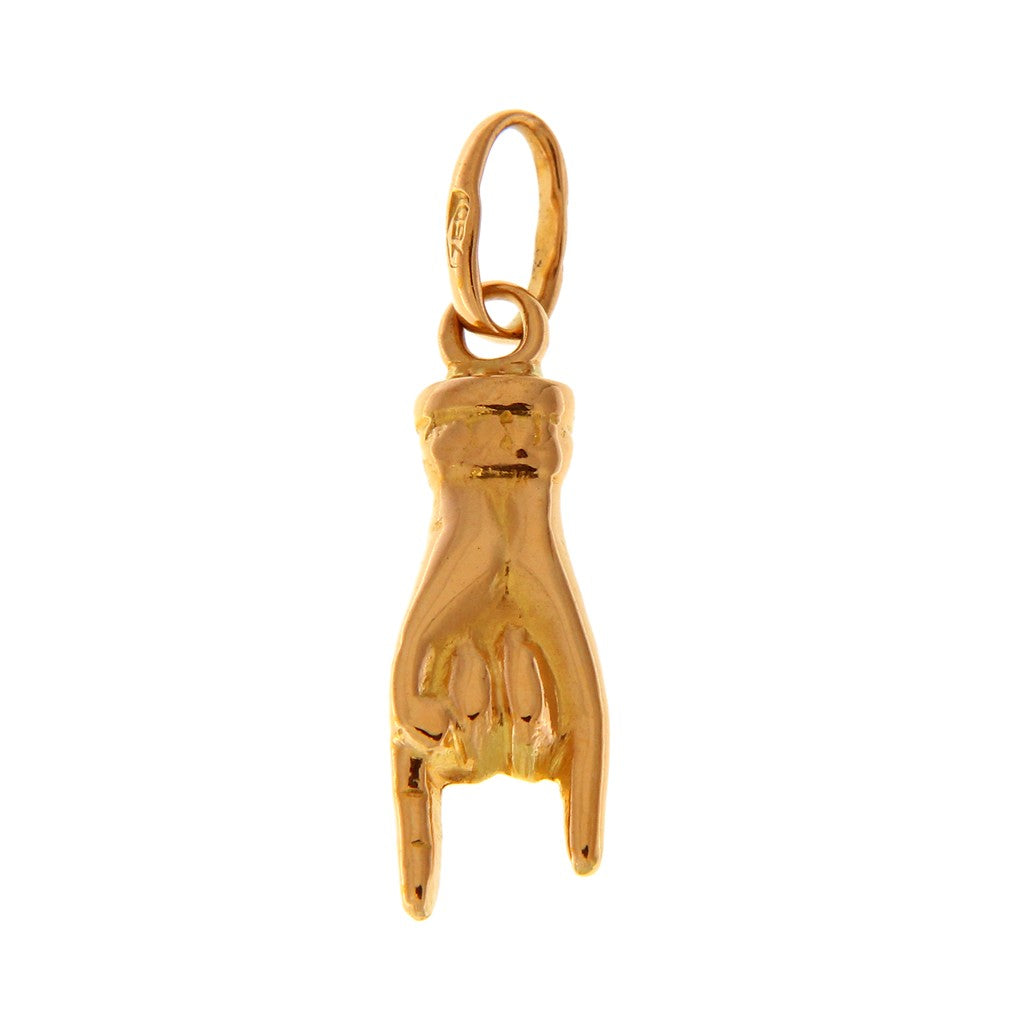 Ciondolo in oro 750 (18KT) portafortuna a forma di mano che fa le corna