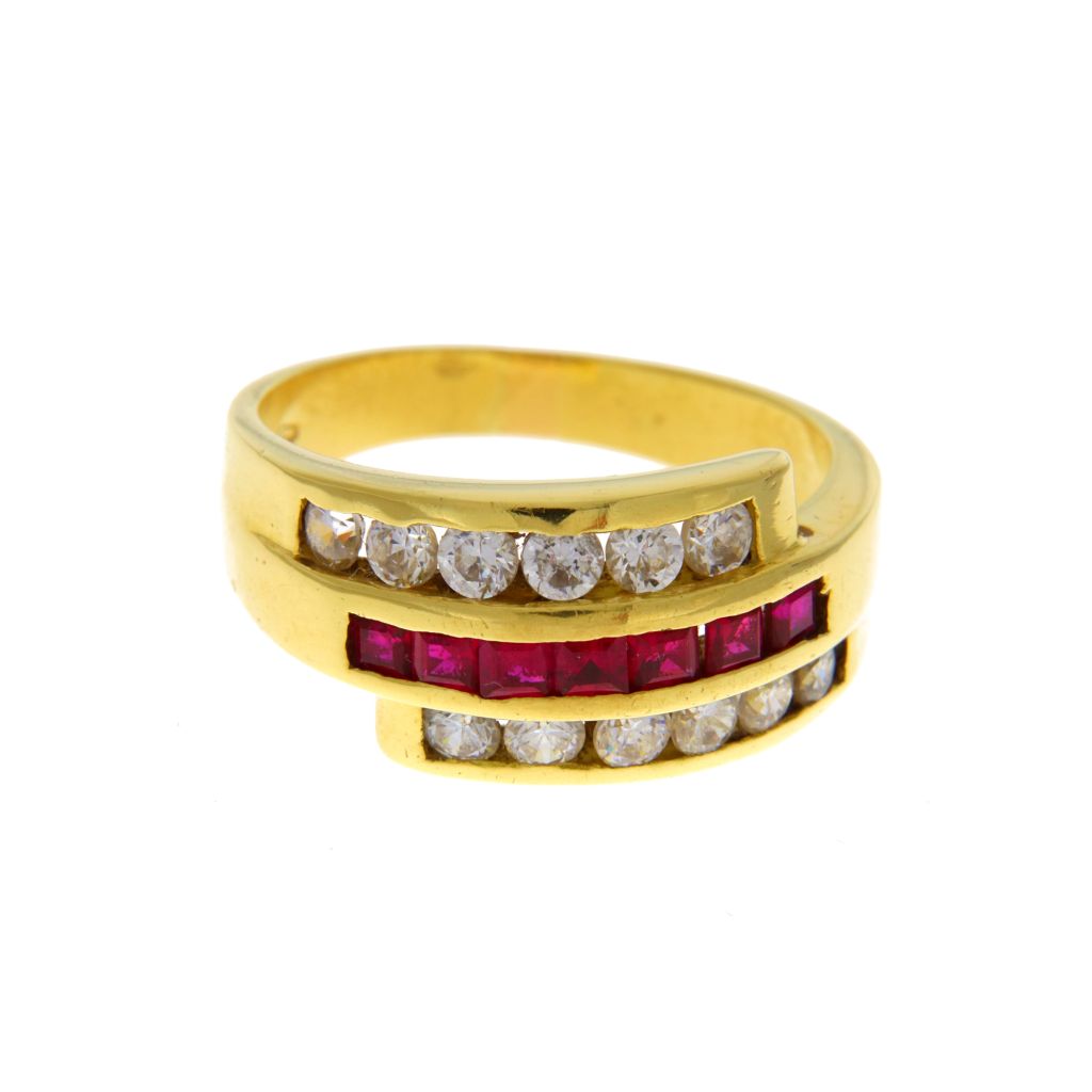 Anello in oro 750 (18 KT) fascia tripla riviera pietre rosse e bianche
