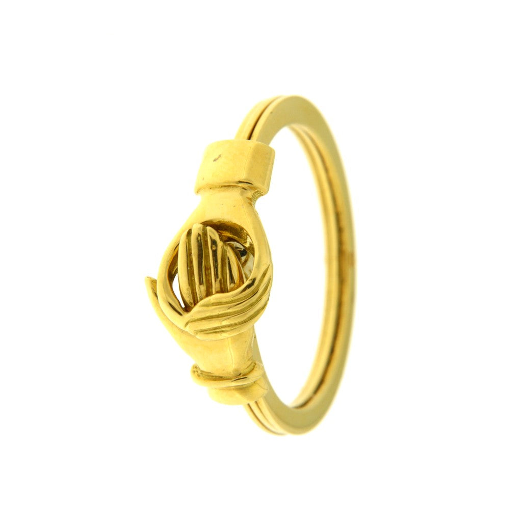 Anello in oro 750 (18KT) mani di Santa Rita, da non confondere con la Maninfide, in cui le mani proteggono un cuore che si nota aprendole
