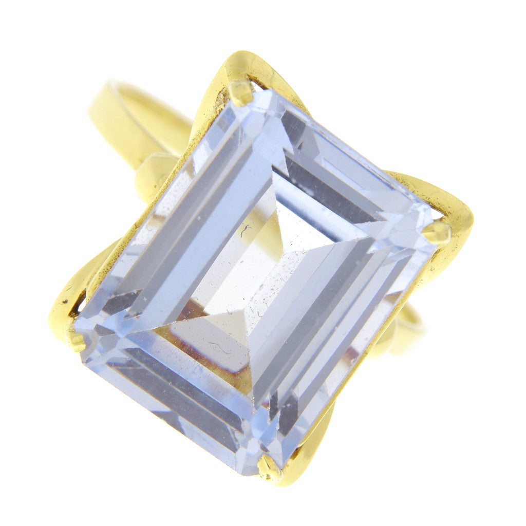 Anello in oro 750 (18 KT) rettangolo pietra celeste dal taglio a smeraldo