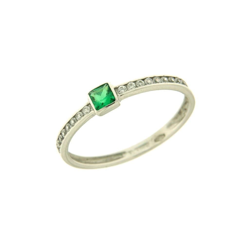 Anello in oro 750 (18KT) pietre verde e bianche laterali
