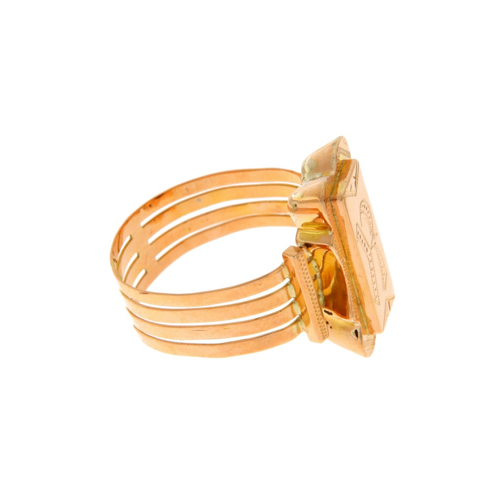 Anello in oro 750 ( 18 KT ) uomo sigillo vintage anni '50 lavorato con inizilae R
