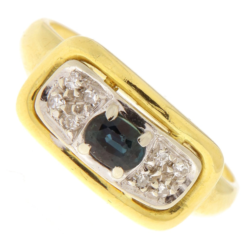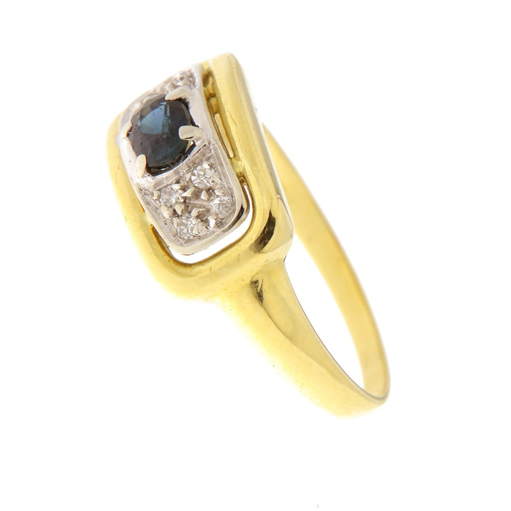 Anello in oro 750 (18 KT) fascetta con zaffiro e diamantini