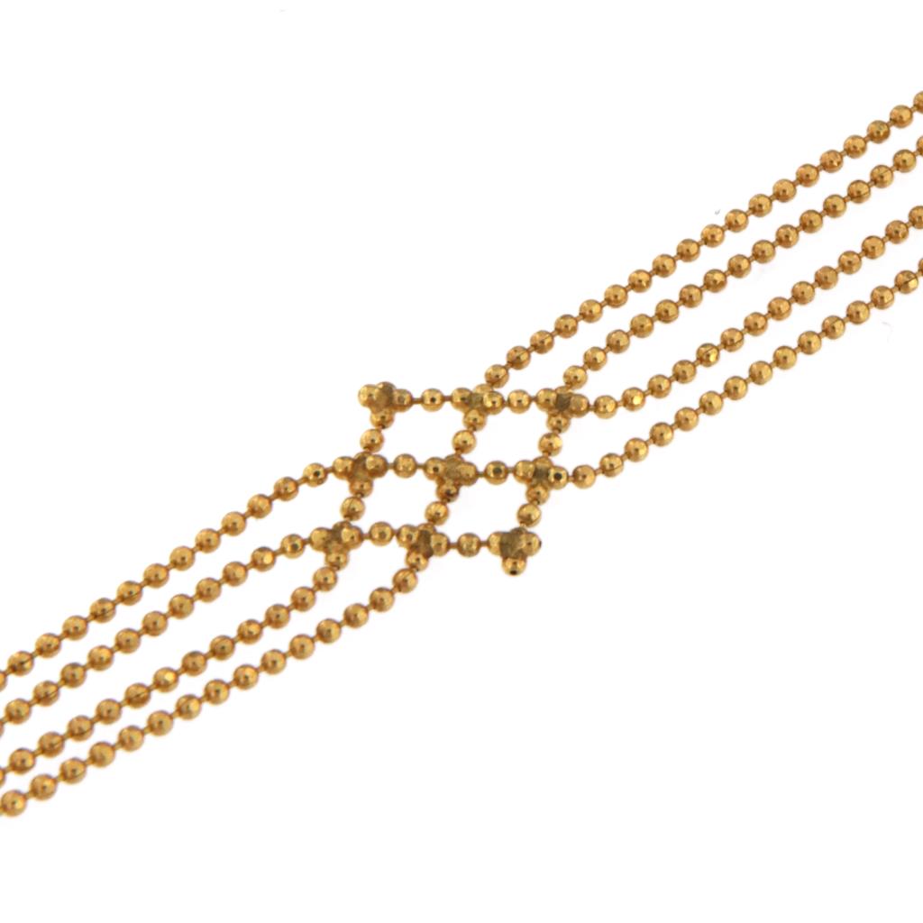 Bracciale morbido in oro 750 (18 KT) quattro fili di pallini con motivo centrale a rombo