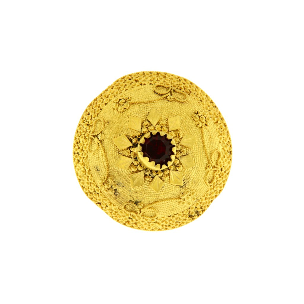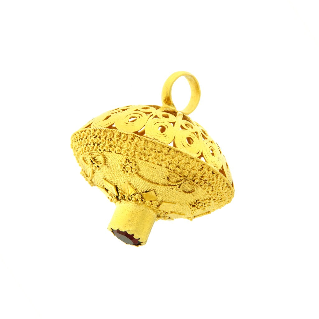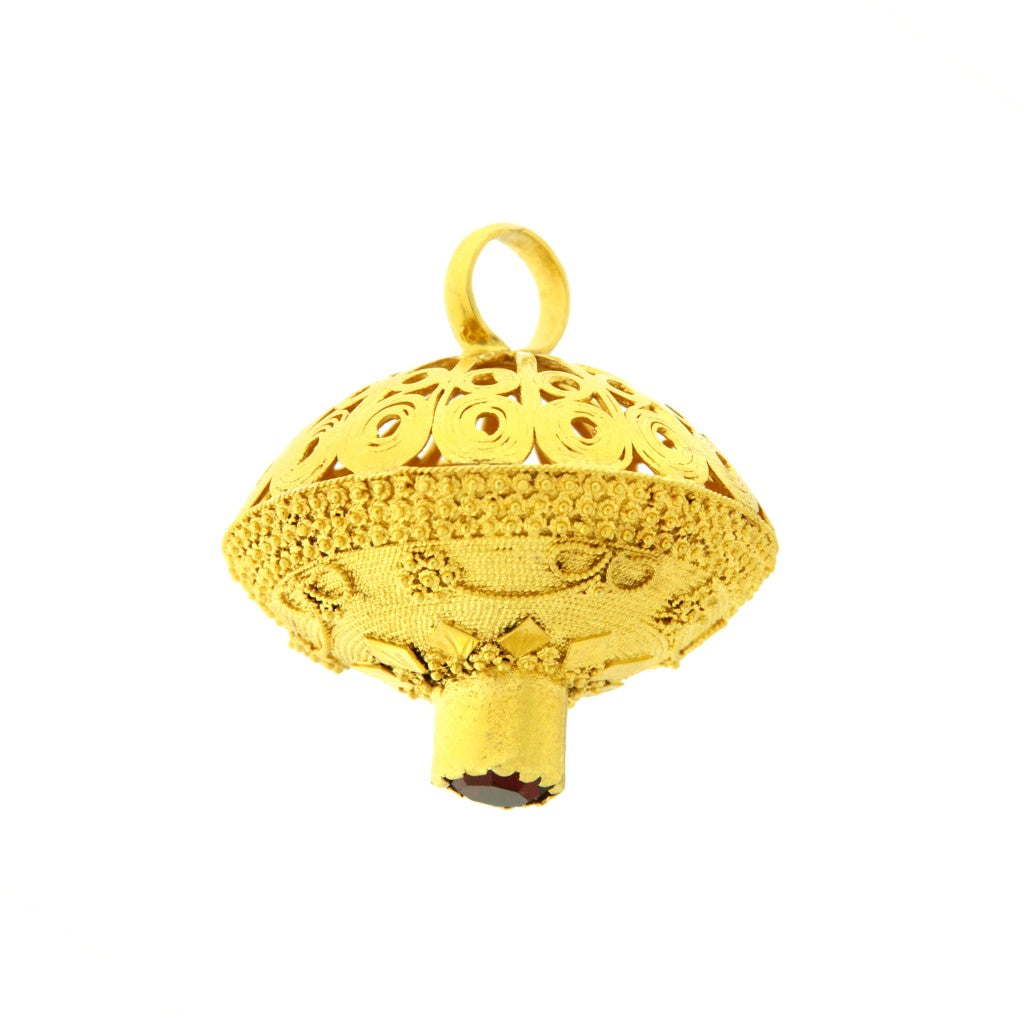 Ciondolo in oro 750 (18KT) bottone in filigrana sarda con pietra rossa