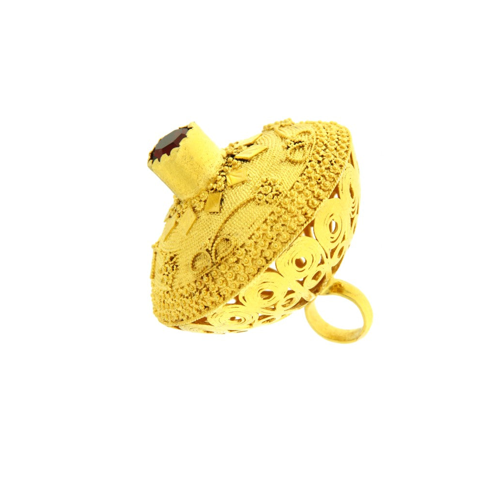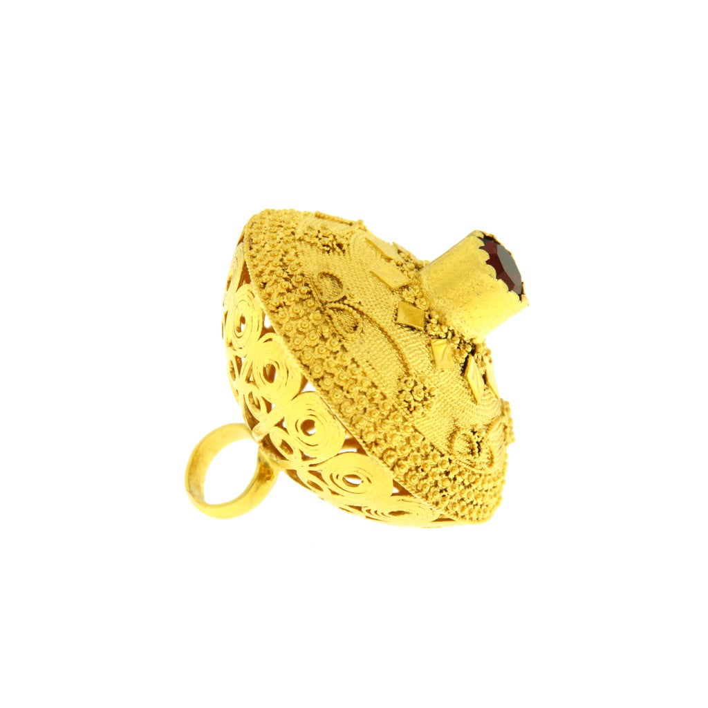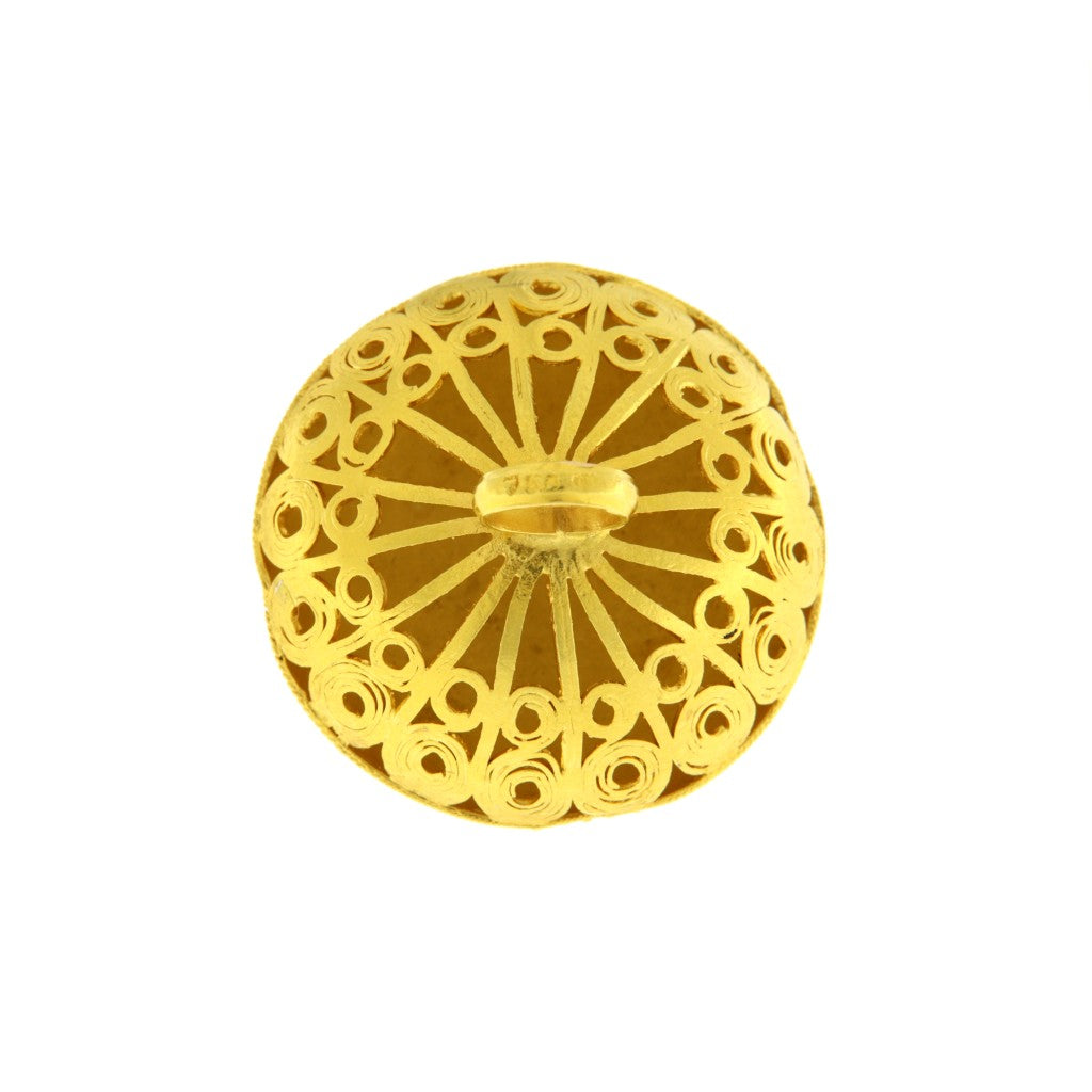 Ciondolo in oro 750 (18KT) bottone in filigrana sarda con pietra rossa