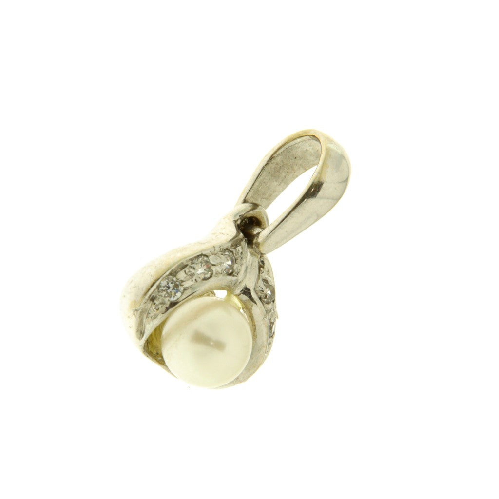 Ciondolo in oro 750 (18KT) fantasia con perla centrale e pietrine bianche artificiali