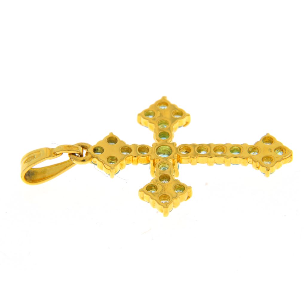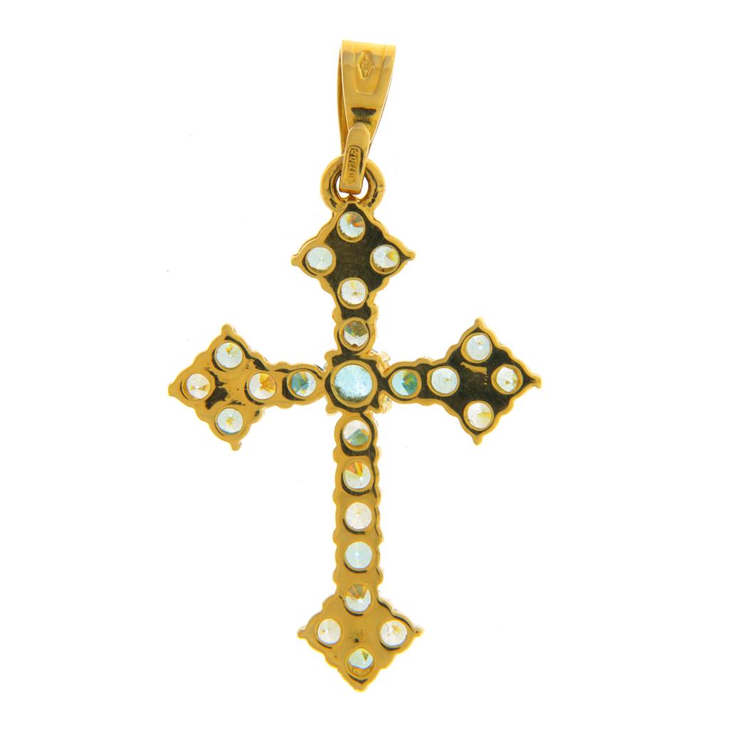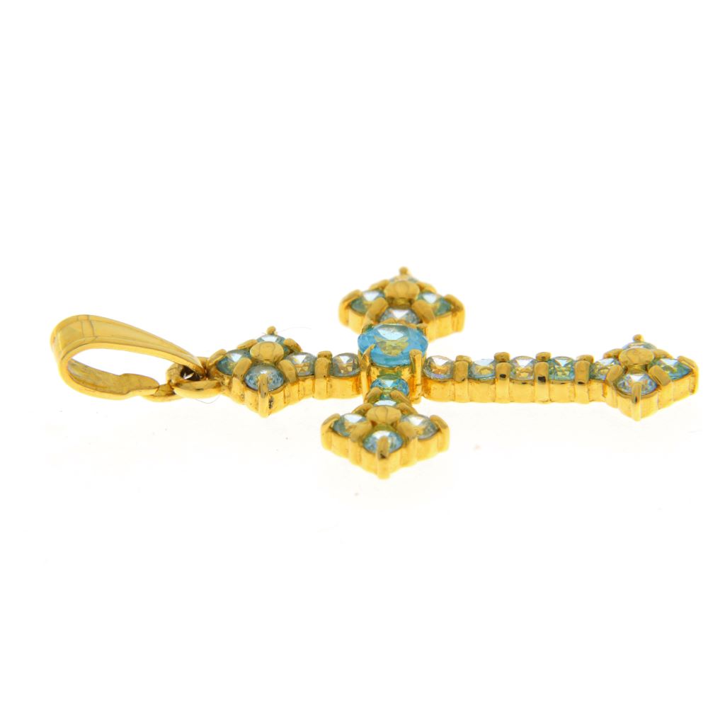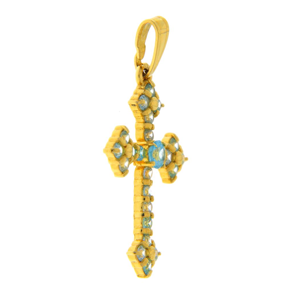 Ciondolo in oro giallo 750 (18KT) Ciondolo Croce con zirconi bianchi e celesti