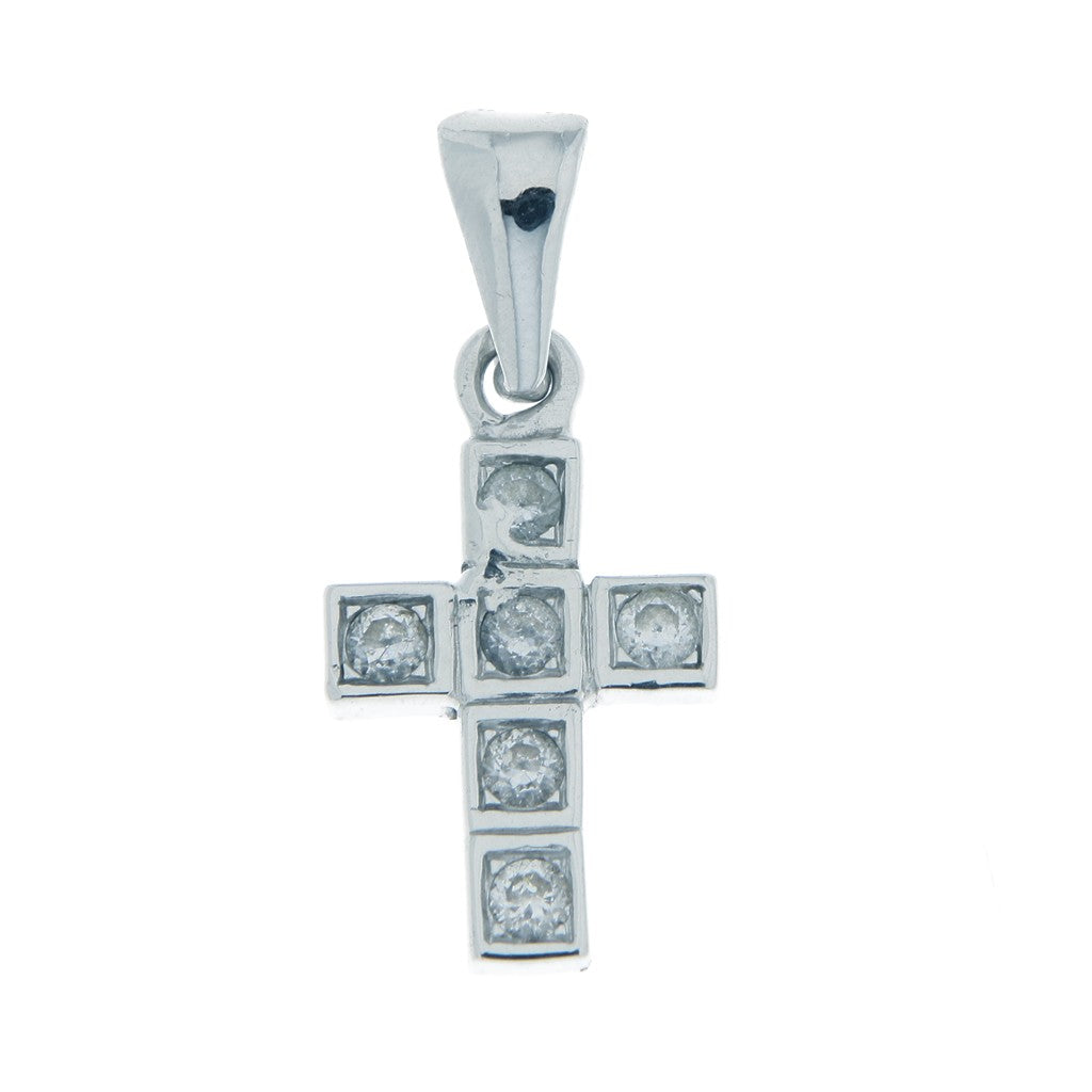 Ciondolo in oro 750 (18KT) Croce squadrata con pietre bianche