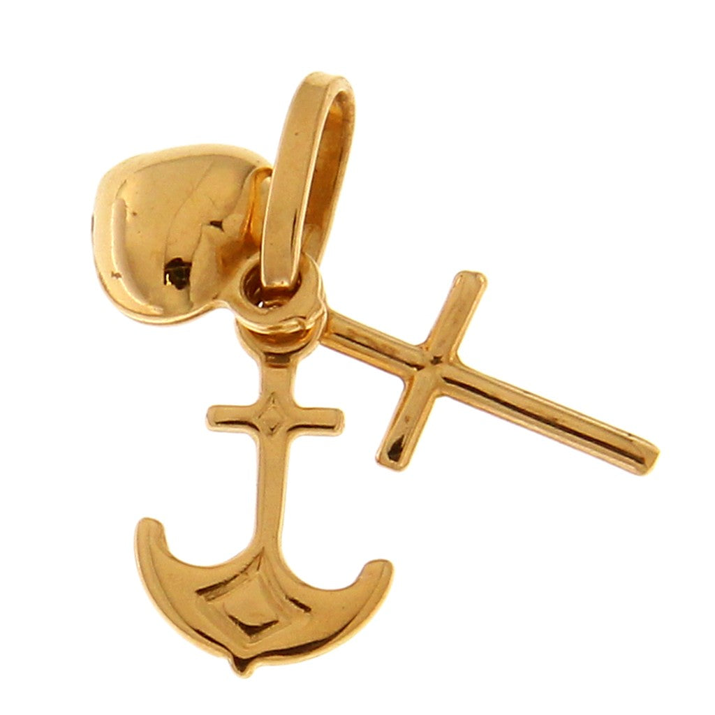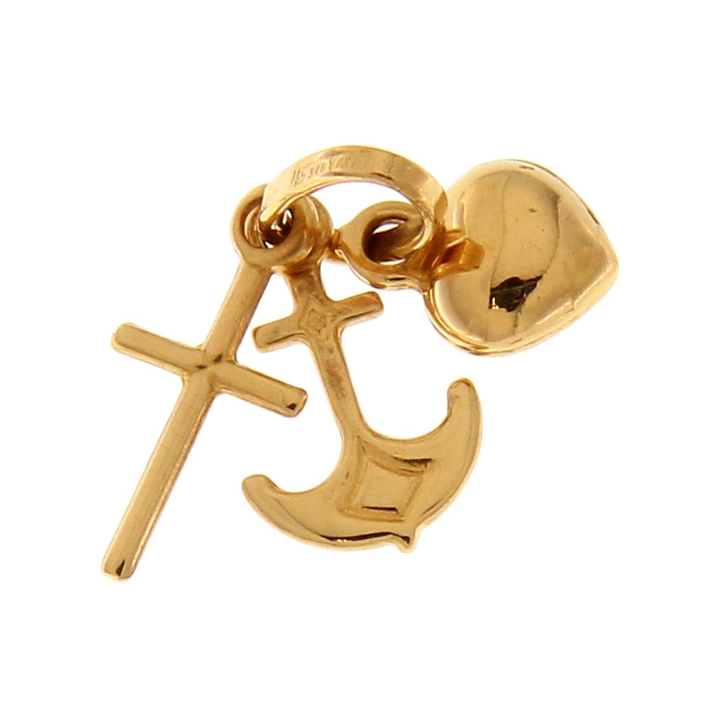 Ciondolo in oro 750 (18KT): la Croce della Camargue riunisce i simboli delle tre virtù teologali, Fede (rappresentata dalla croce latina), Speranza (rappresentata dall'àncora) e Carità, rappresentata dal cuore.