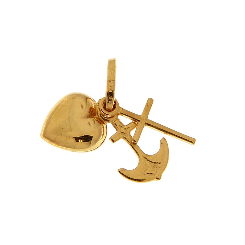 Ciondolo in oro 750 (18KT) la Croce della Camargue riunisce i simboli delle tre virtù teologali, Fede (rappresentata dalla croce latina), Speranza (rappresentata dall'àncora) e Carità, rappresentata dal cuore.