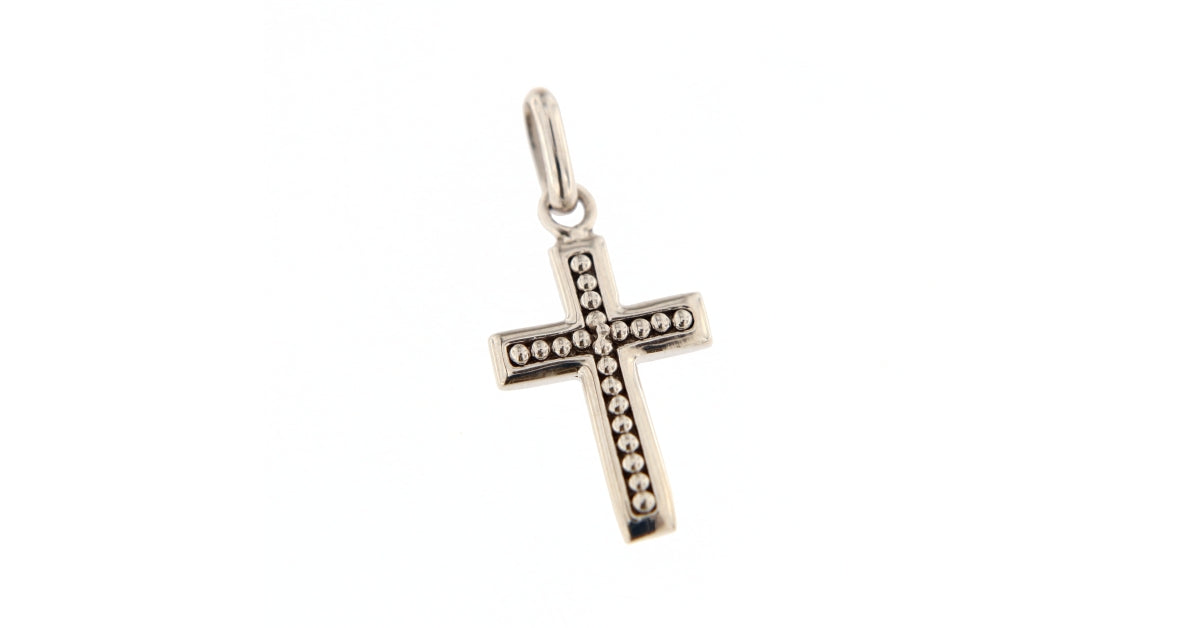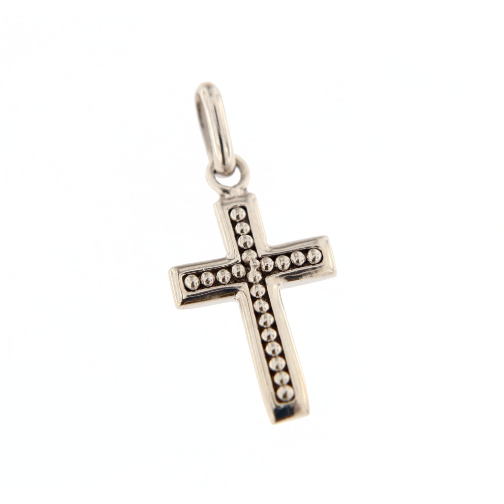 Ciondolo in oro 750 (18KT) Croce piccola con lavorazione a sfere