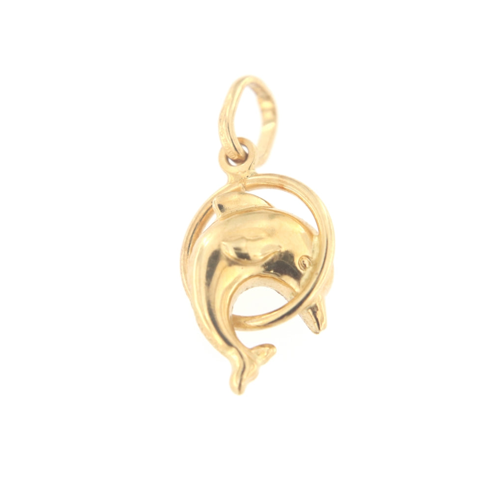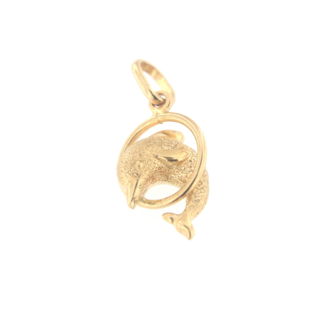 Ciondolo in oro 750 (18Kt) Delfino dentro al cerchio metà satinato