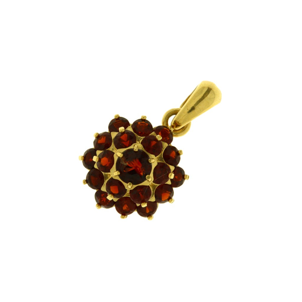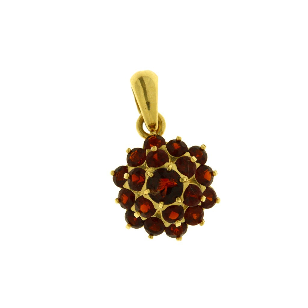 Ciondolo in oro 750 (18KT) fiore con granatine