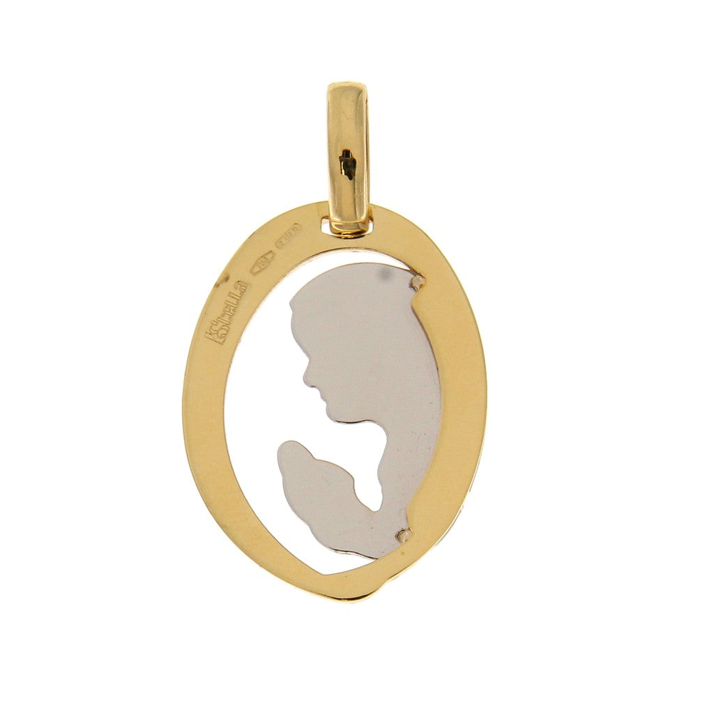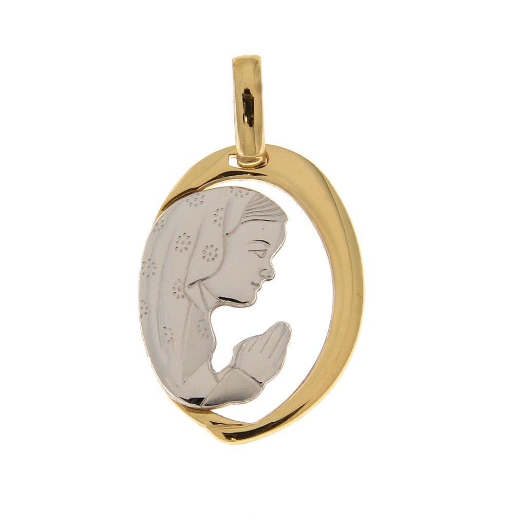 Ciondolo in oro 750 (18KT) ovale raffigurante la Madonna in preghiera