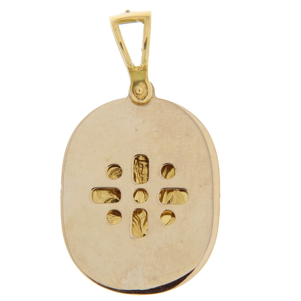 Ciondolo in oro 750 (18KT) ovale religioso Madonna con bambin Gesù
