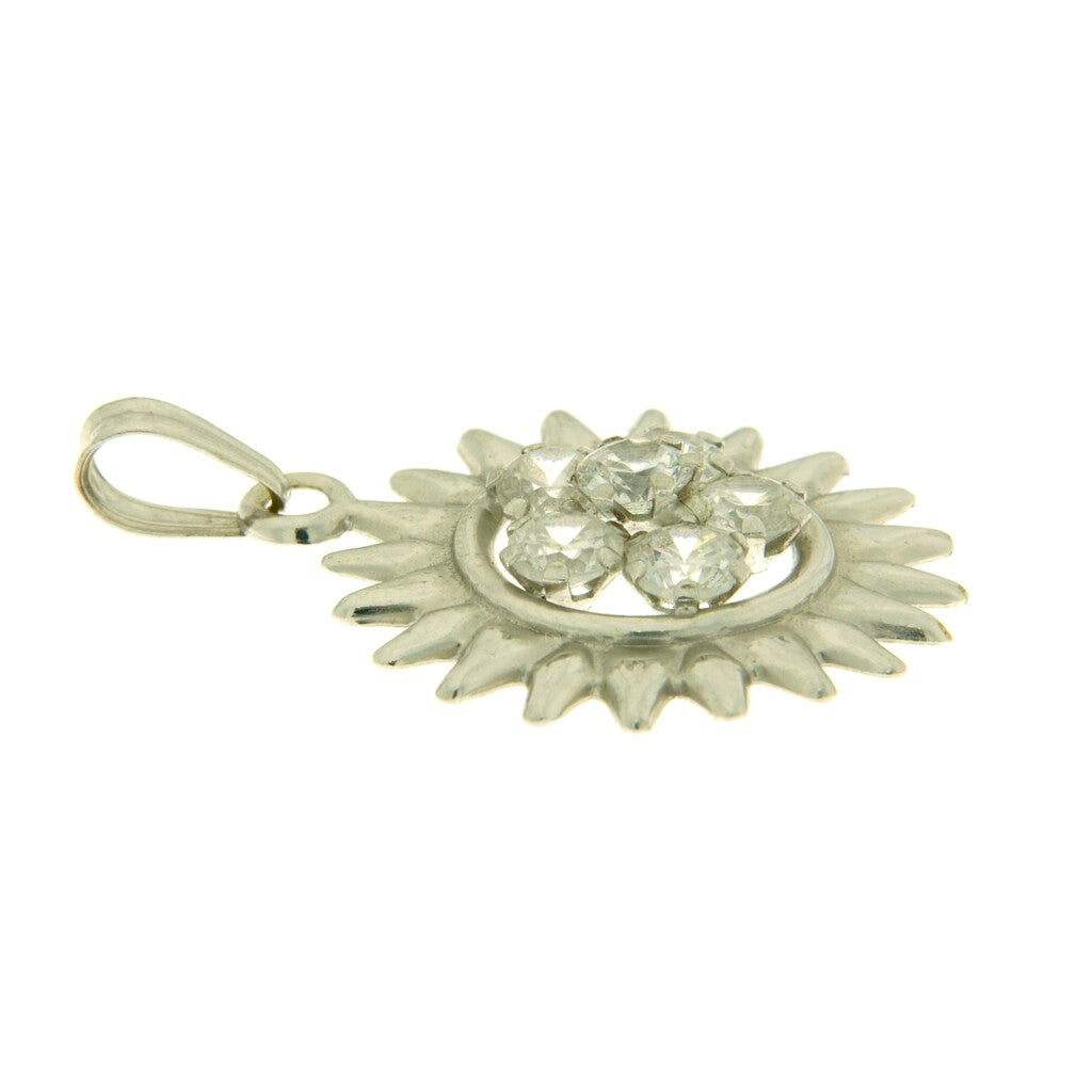 Ciondolo in oro 750 (18KT) sole con pietre bianche a formare un fiore