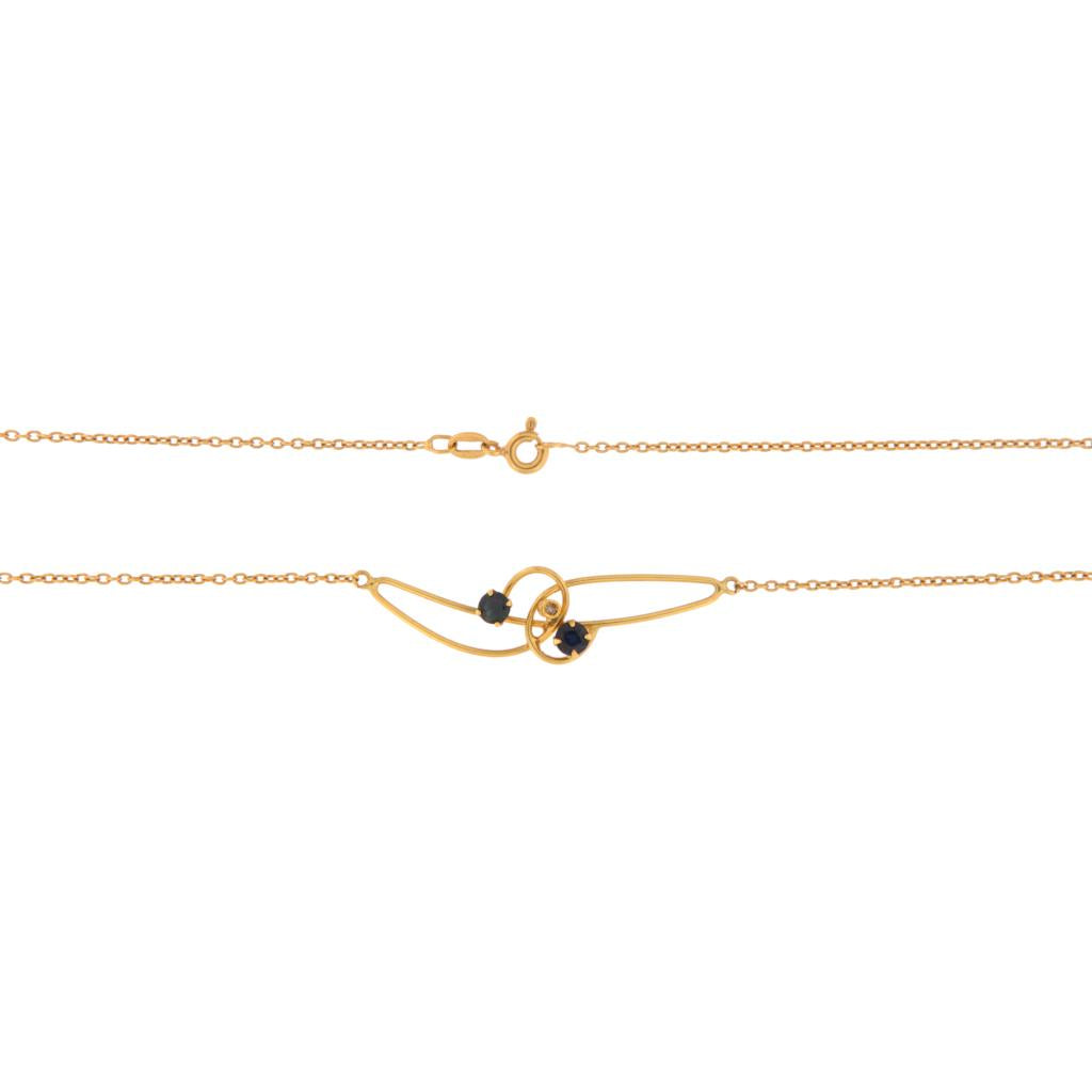 Collana in oro 750 (18KT) maglia rolò con inserto centrale rigido e due zaffiri, più un diamantino