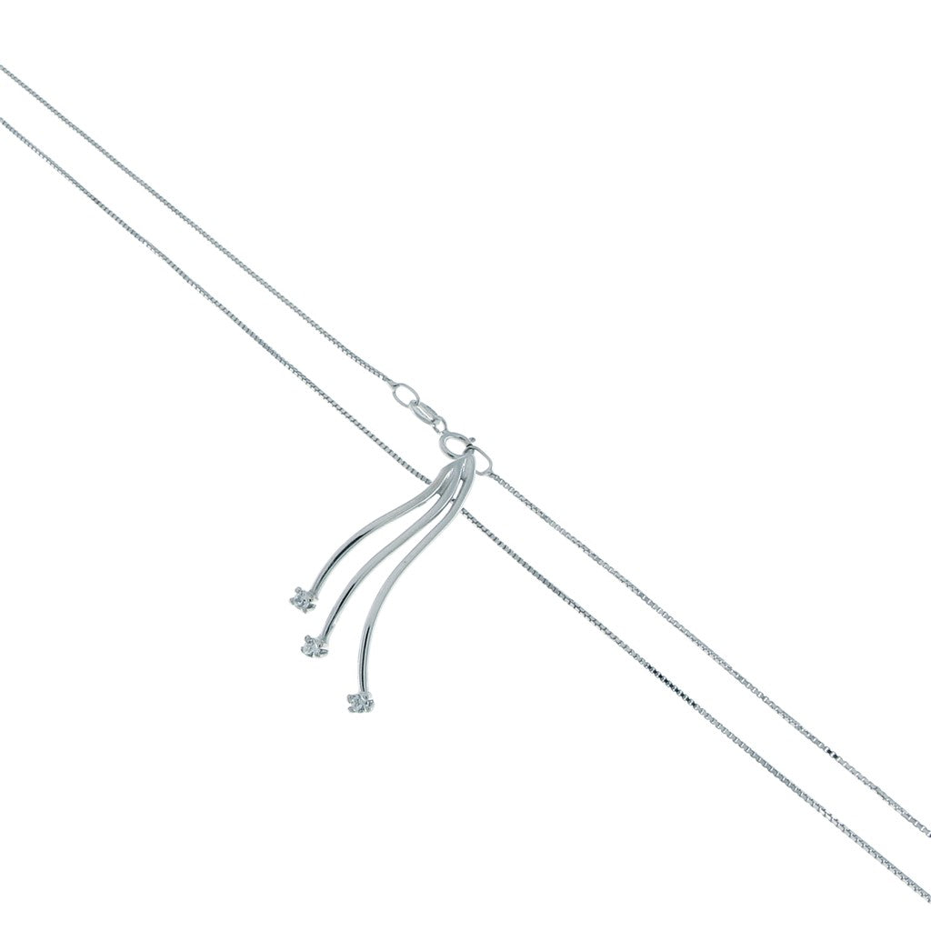 Collana in oro 750 (18KT) maglia venetina (o veneziana) con ciondolo rigido a tre file ondulate con tre zirconi