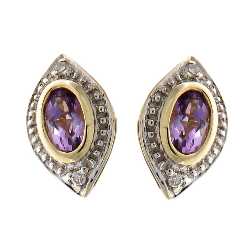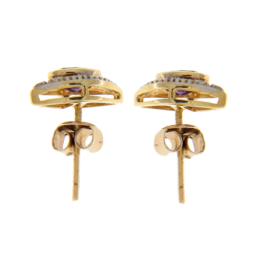 Orecchini in oro 500 (12KT) rombo con pietre lilla/rosa