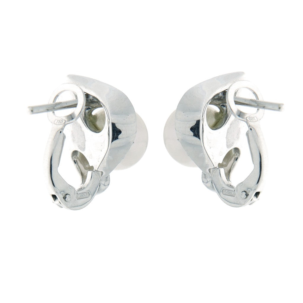 Orecchini in oro 750 (18KT) a lobo con chiusura clip. Perle e pietre artificiali