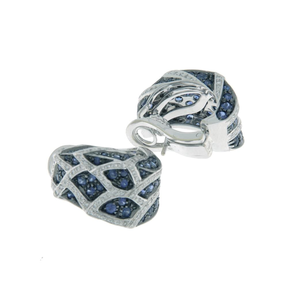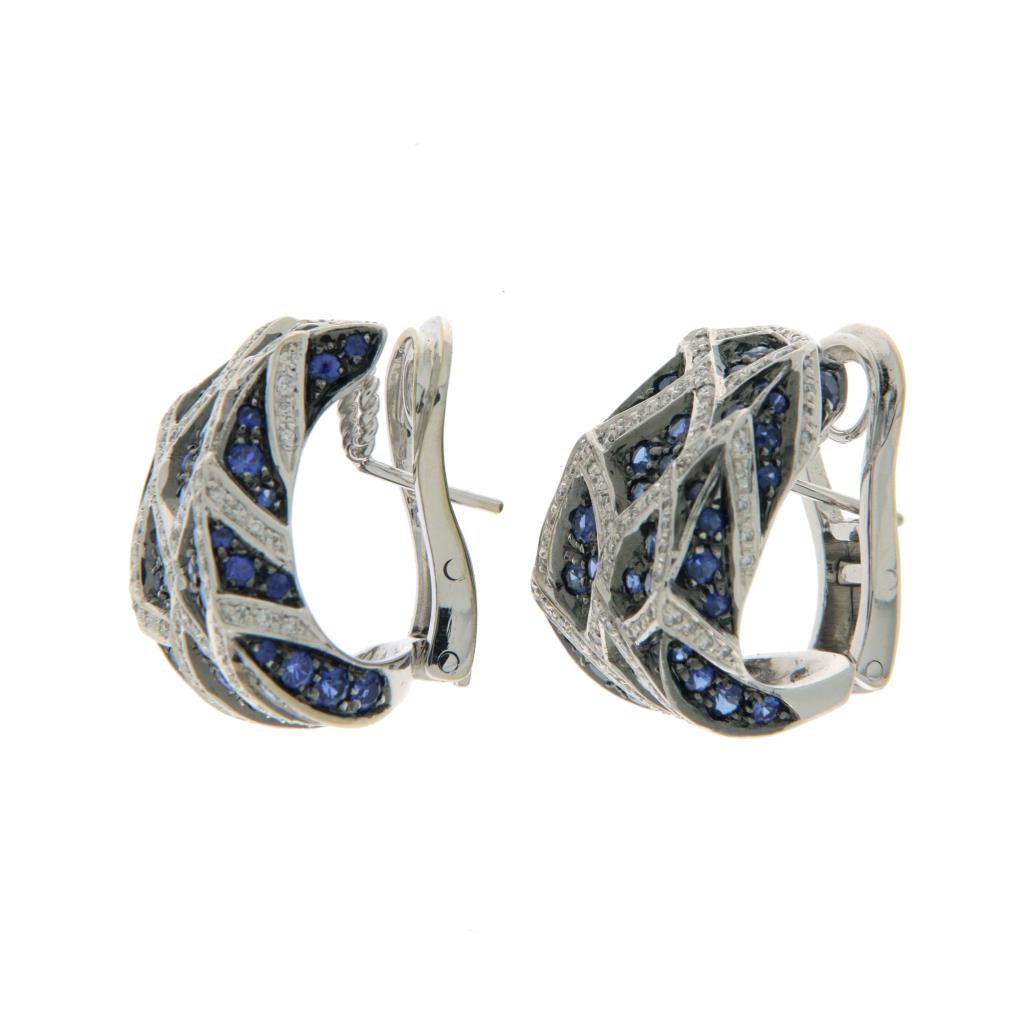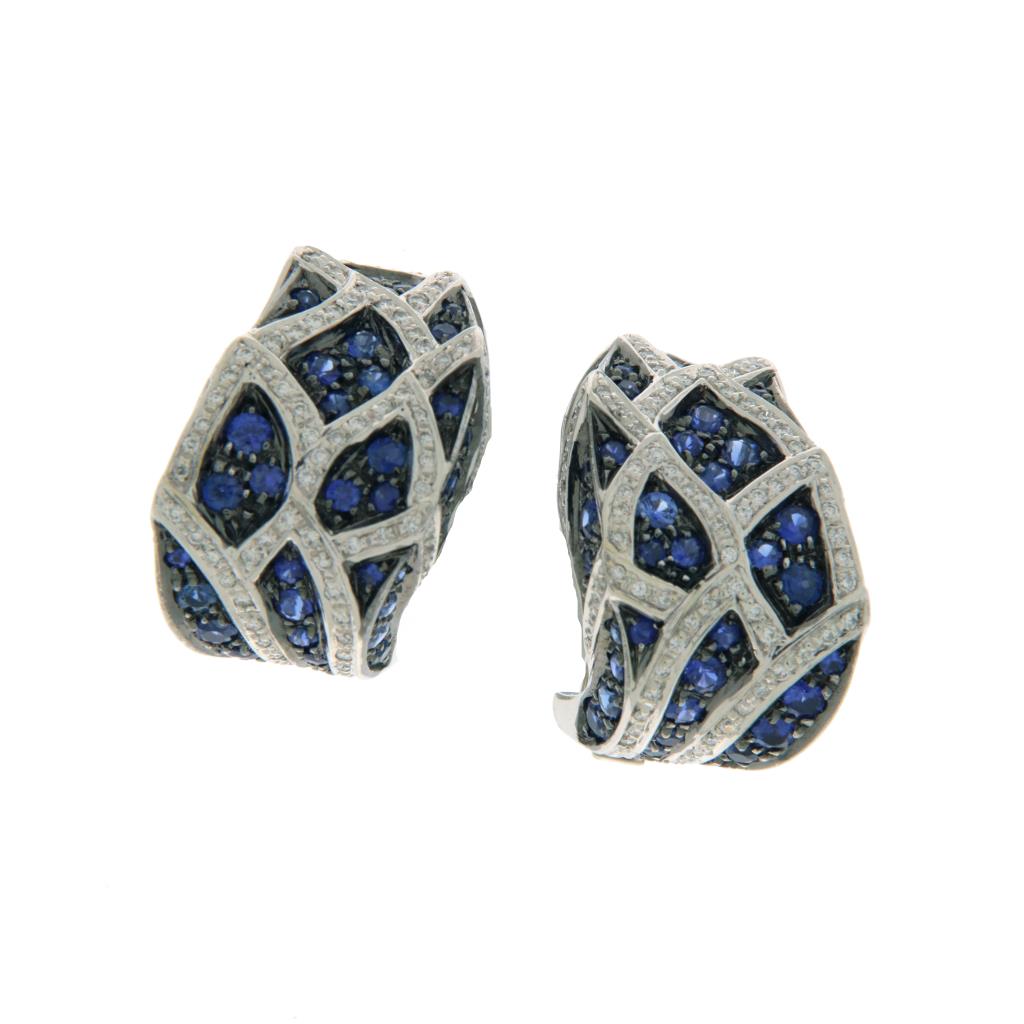 Orecchini in oro 750 (18KT) con pavè di diamanti e zaffiri