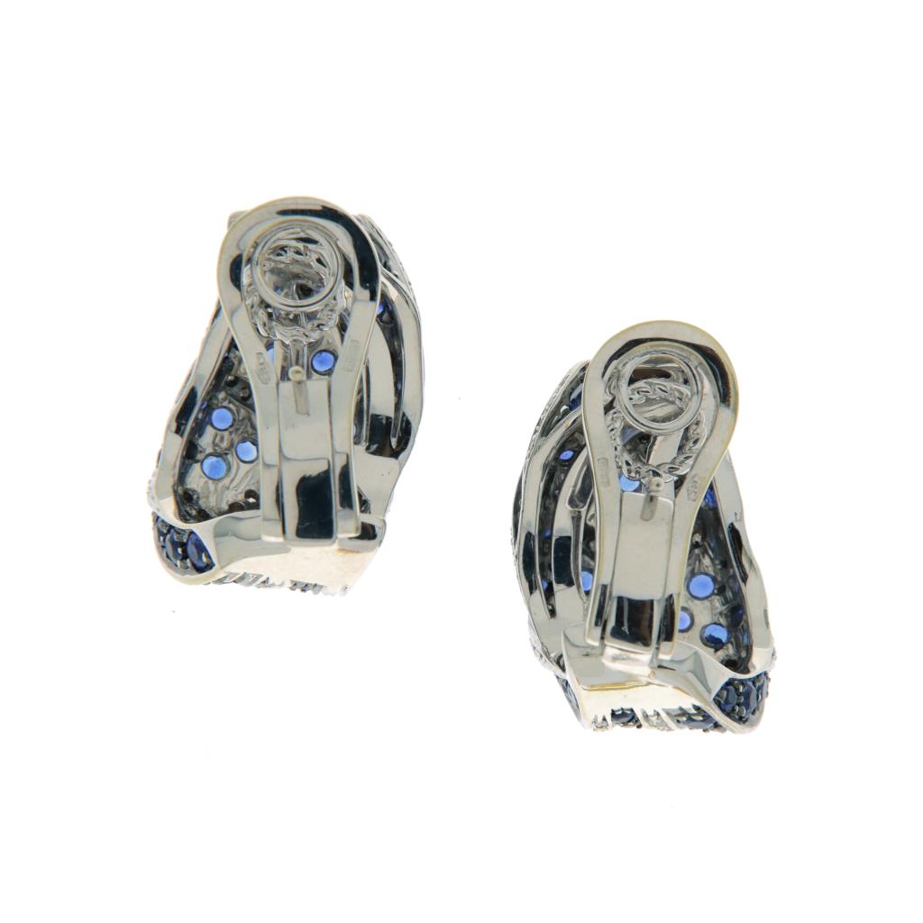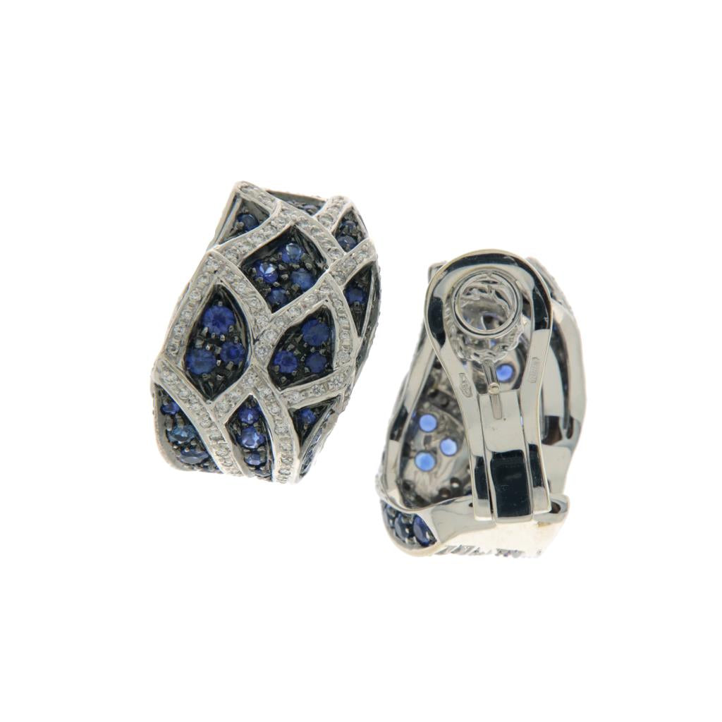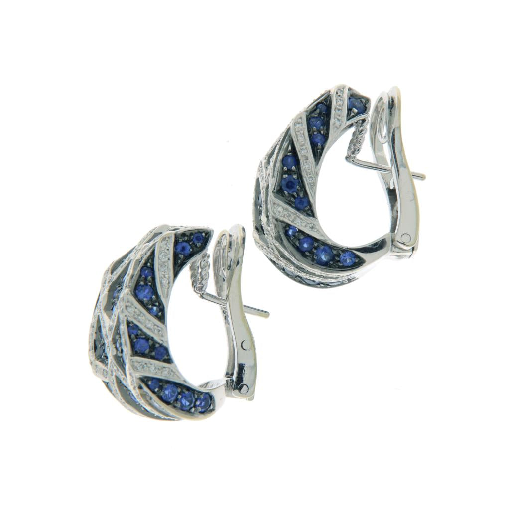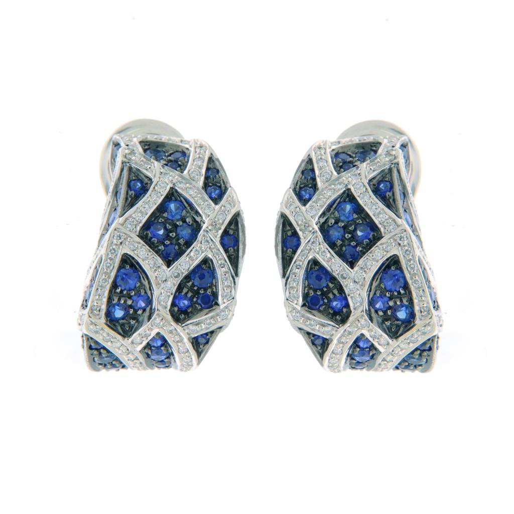 Orecchini in oro 750 (18KT) con pavè di diamanti e zaffiri