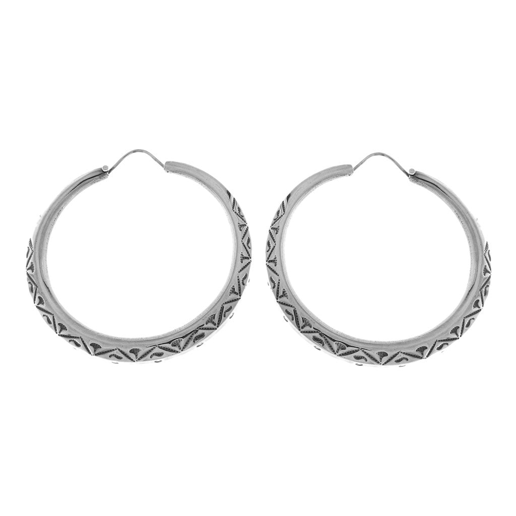 Orecchini in argento a cerchio con lavorazione bombata e incisioni