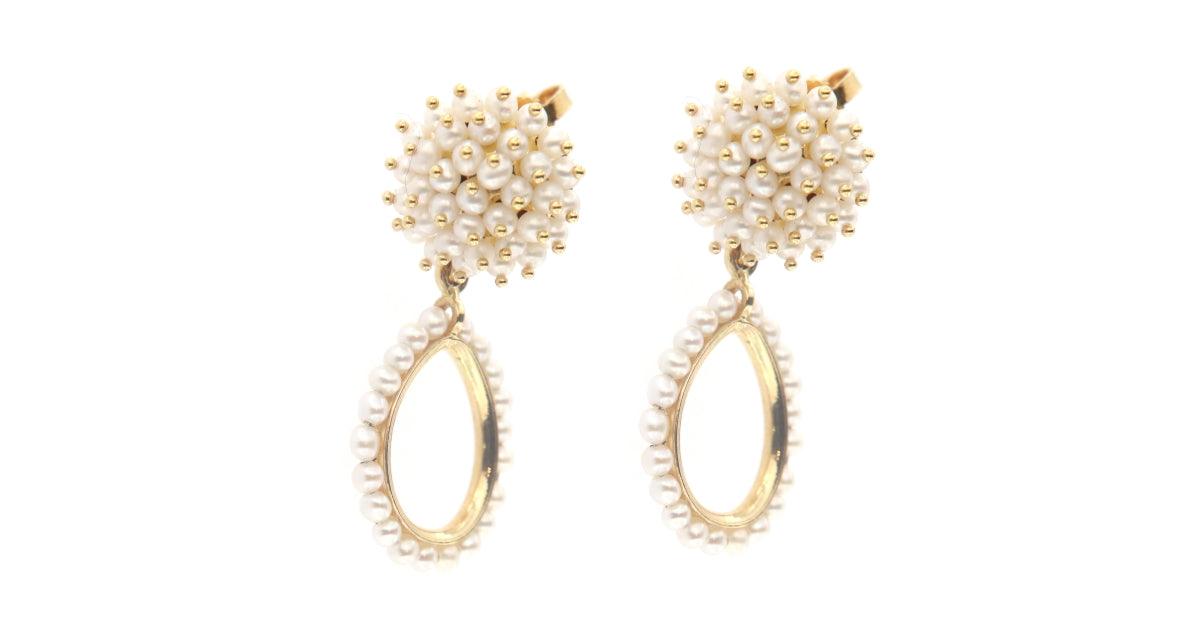 Orecchini in oro 750 (18KT) lobo pendenti cupola perline