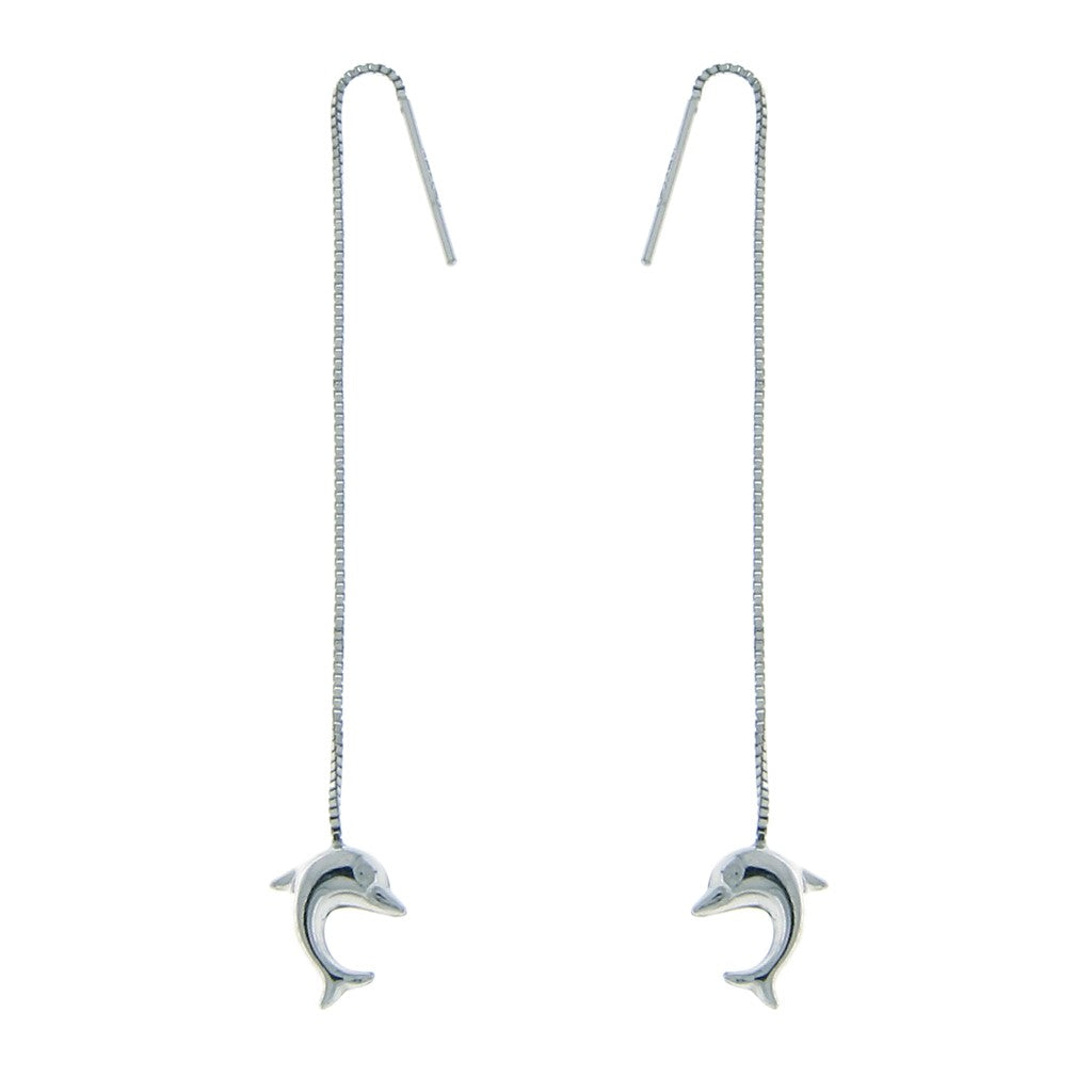 Orecchini in oro 750 (18KT) pendenti con filo venetina e delfini bombati all'estremità
