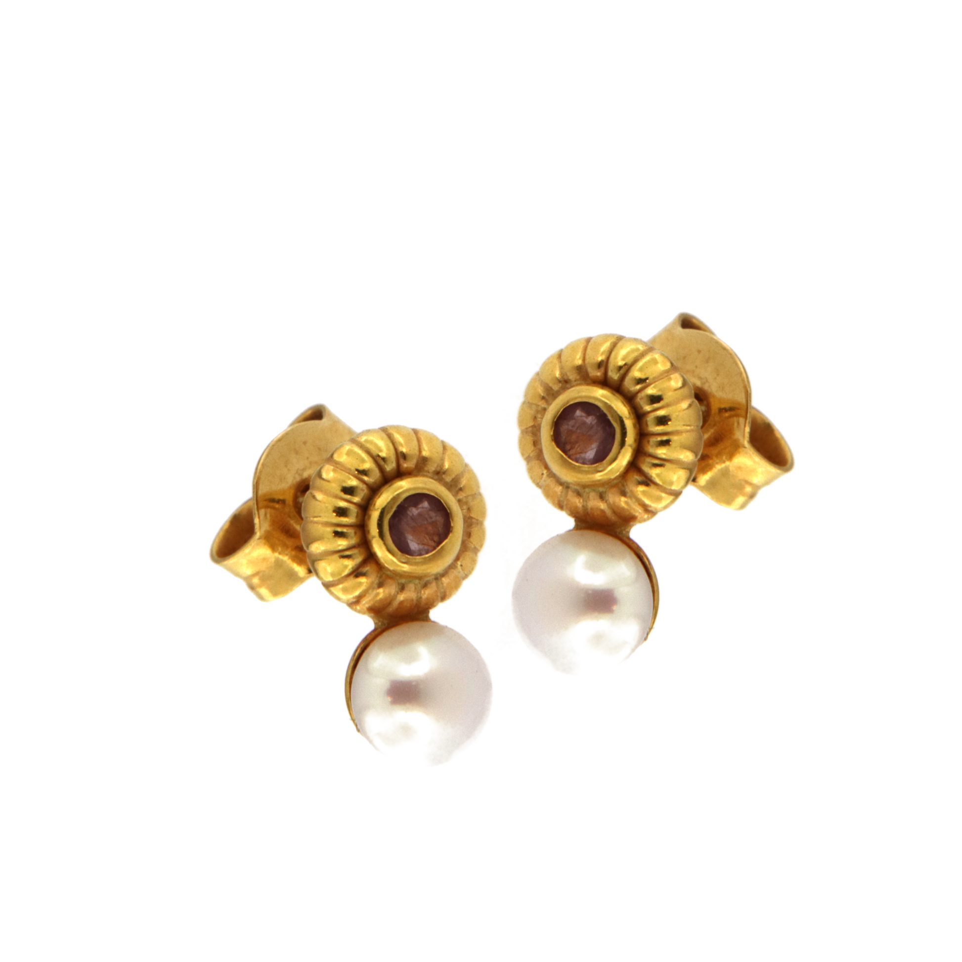Orecchini in oro 750 (18Kt) Lobo pendente perlina e pietra rossa
