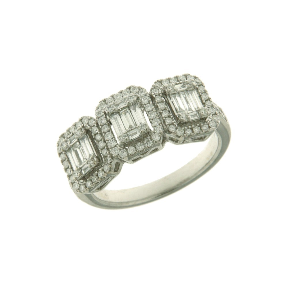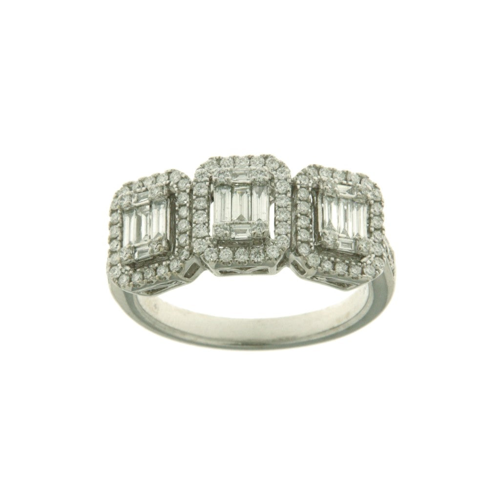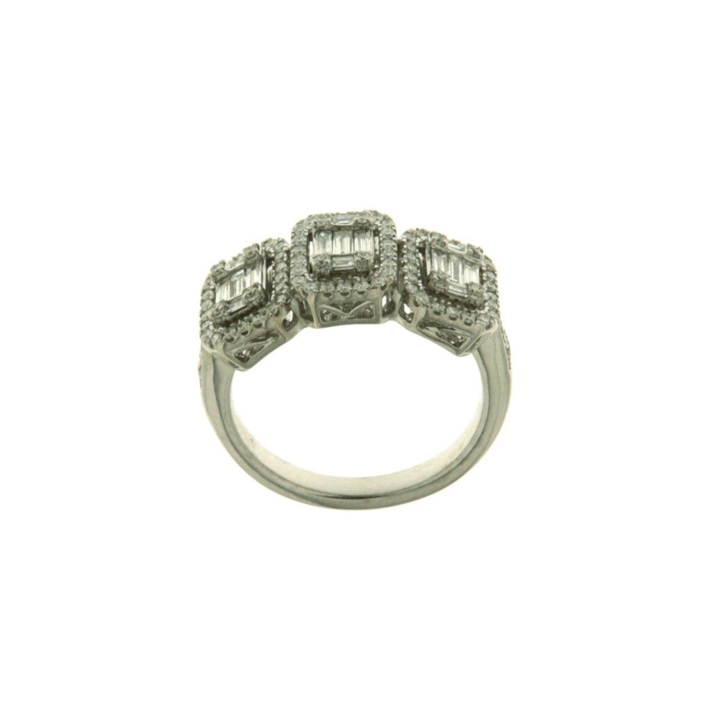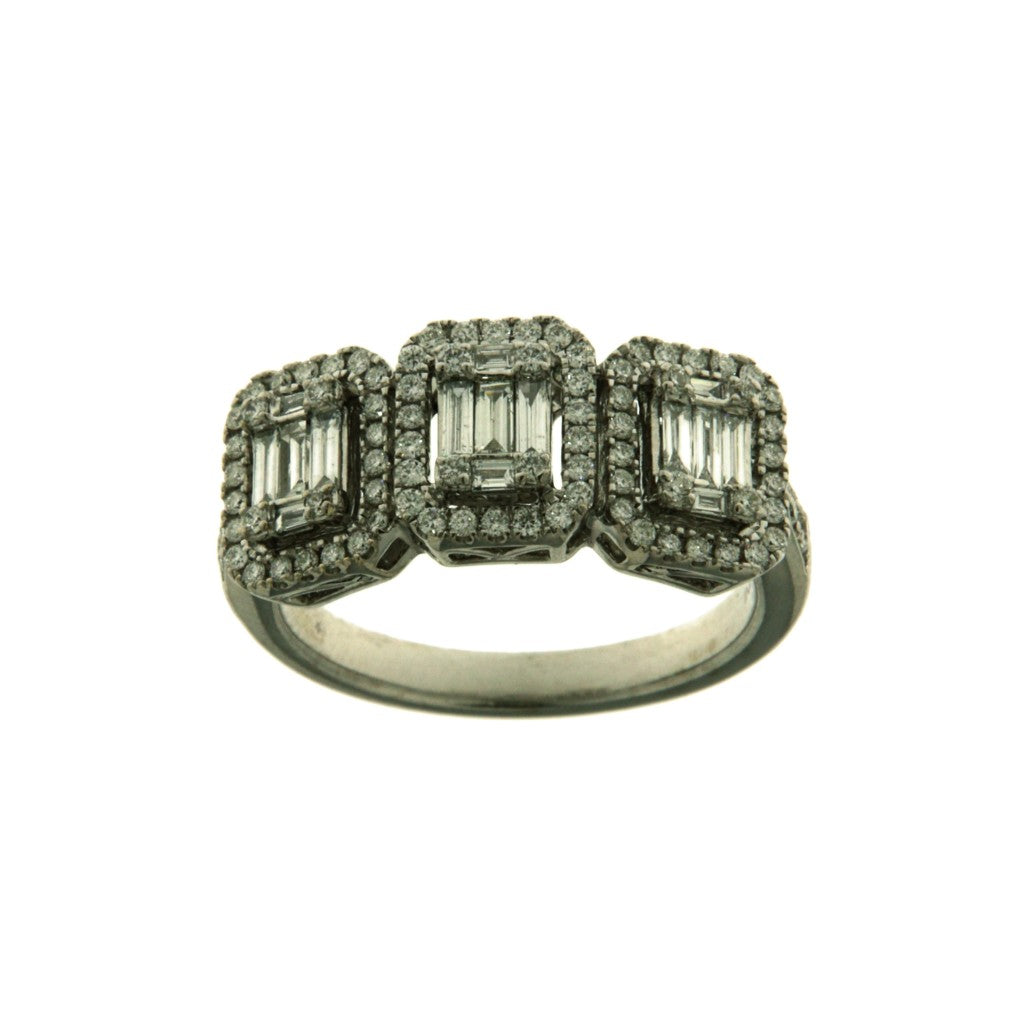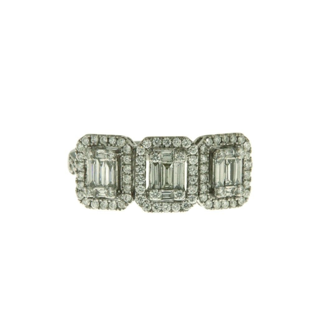 Anello in oro 750 (18 KT) del marchio Salvini, con diamanti taglio baguette all'interno della montatura e taglio brillante lungo la cornice